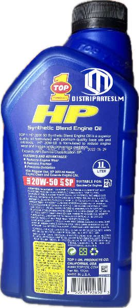 (17011) ACEITE DE MOTOR TOP 1 20W50 SINTETICO HP API SN PLUS CUARTO